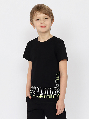 Футболка для девочки с трендовым колледж-принтом, с блестящим эффектом и контрастными бейками по горловине и рукавам. Модель сделана из 100%-хлопкового трикотажа. Материал приятно прилегает к телу, не сковывает движения и позволяет коже дышать.